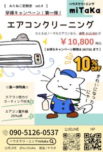 いつもお世話になっております。ハウスクリーニングmiTaKa の山田です。 本日はあちこちで起きている値上げのことです。 当店では基本的に、訪問させていただいた際の駐車につきまして、もし駐車スペースが有れば置かせていただ […]